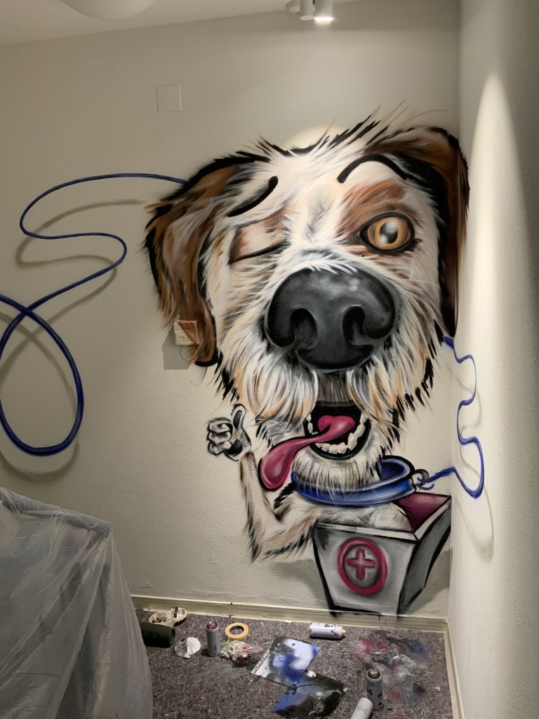 Diese Bild wurde als Auftrag für einen Kinderarzt in Klagenfurt gemalt. Die Illustrierte Version von „Camillo“ verschönert nun das Stiegenhaus vor der Arztpraxis.