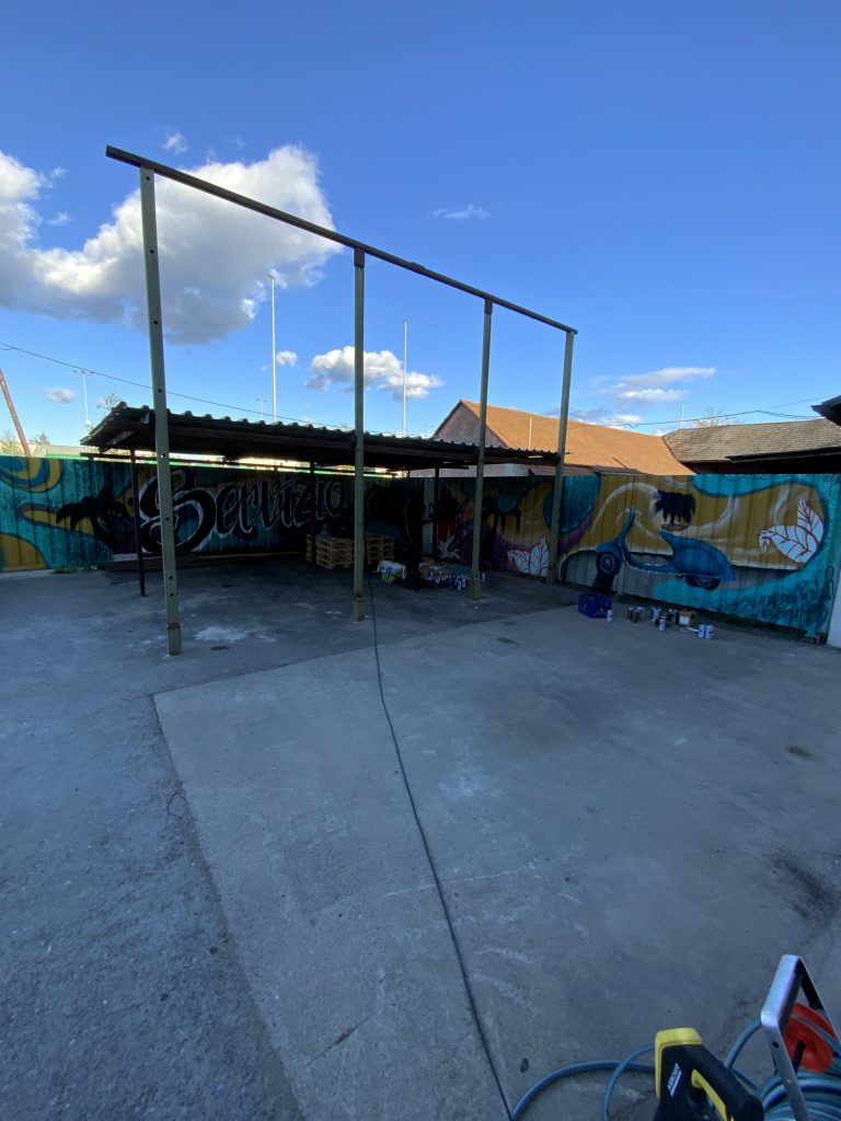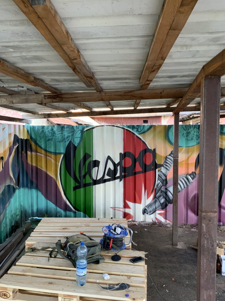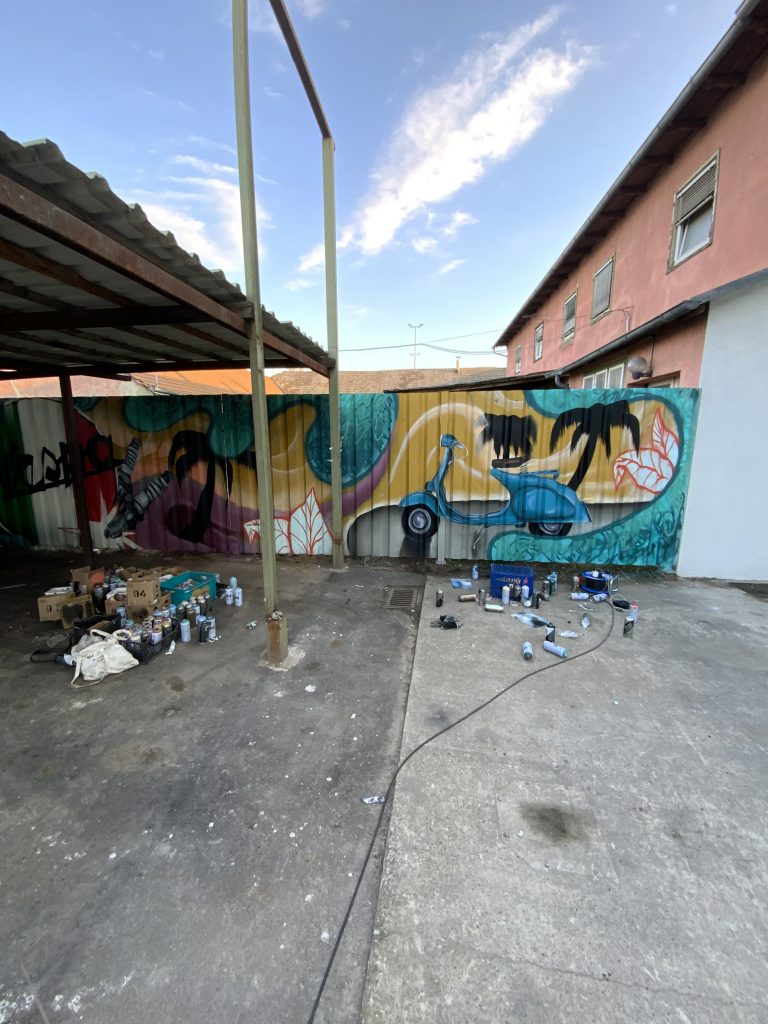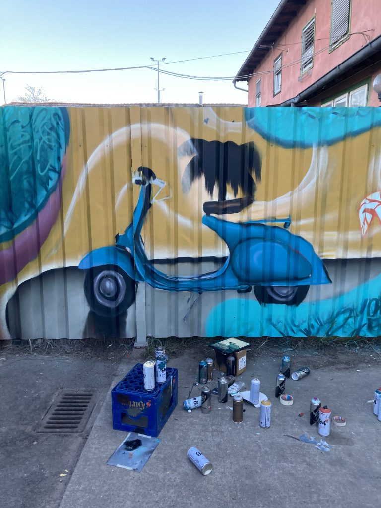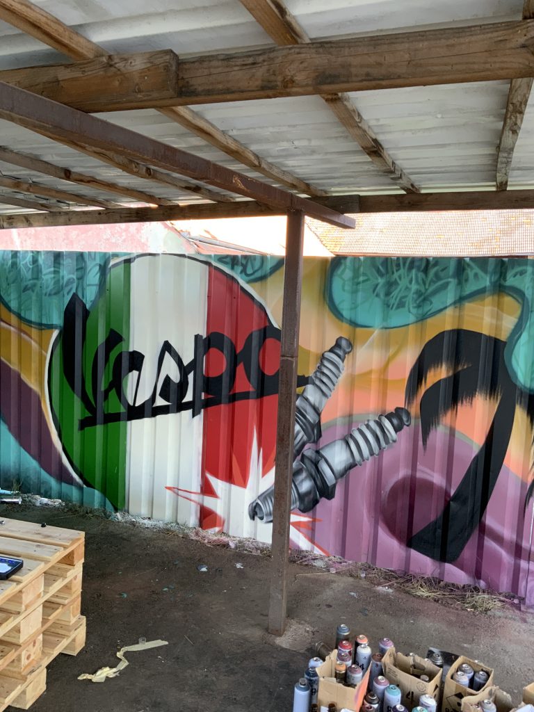 Börni ist der größte Vespa Händler in der Steiermark, als er sein Geschäft um einen Standort erweitert hat suchte er er einen Künstler der seine Fassade und den nicht so ansehnlichen Zaun im Hof verschönert.
